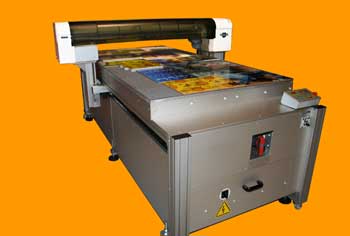 The flatbed printer is a Digital printer which, thanks to its flatbed can print on rigid/hard/stiff media, such as foam, Forex, kapa, D-bond, glass, ceramic tiles, up to a thickness of 21cm. The printing surface is perforated (vacuum flatbed) and divided into two parts and is equipped with industrial vacuum pumps which are able to block the media so that it sticks perfect to the printing surface.